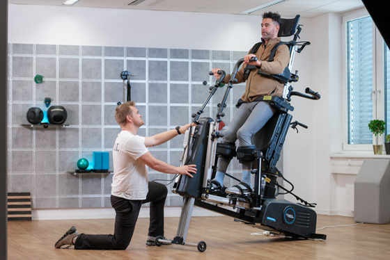 Der Innowalk ist ein innovativer robotischer Bewegungstrainer für die Rehabilitation von Menschen mit schweren körperlichen Behinderungen.